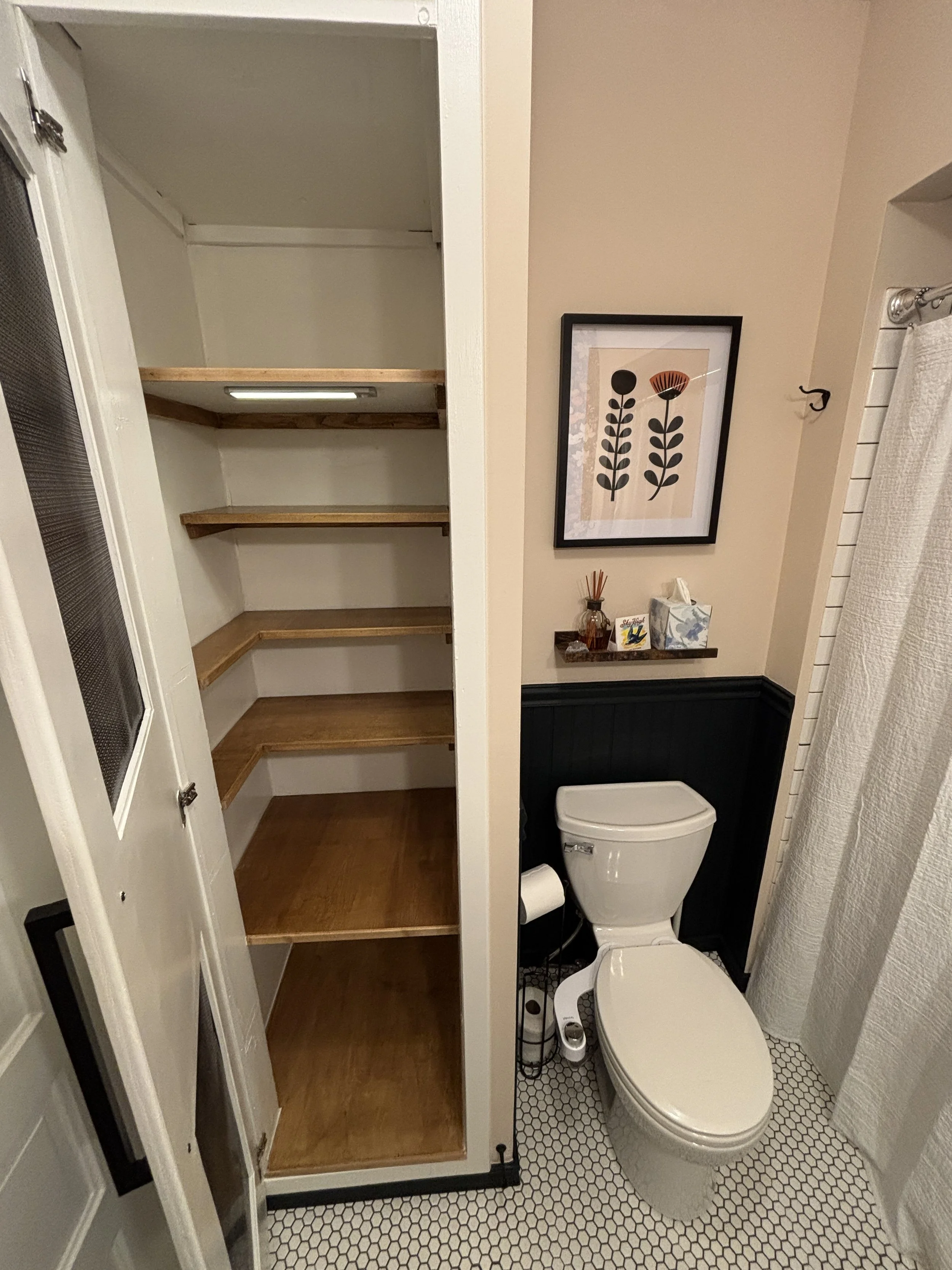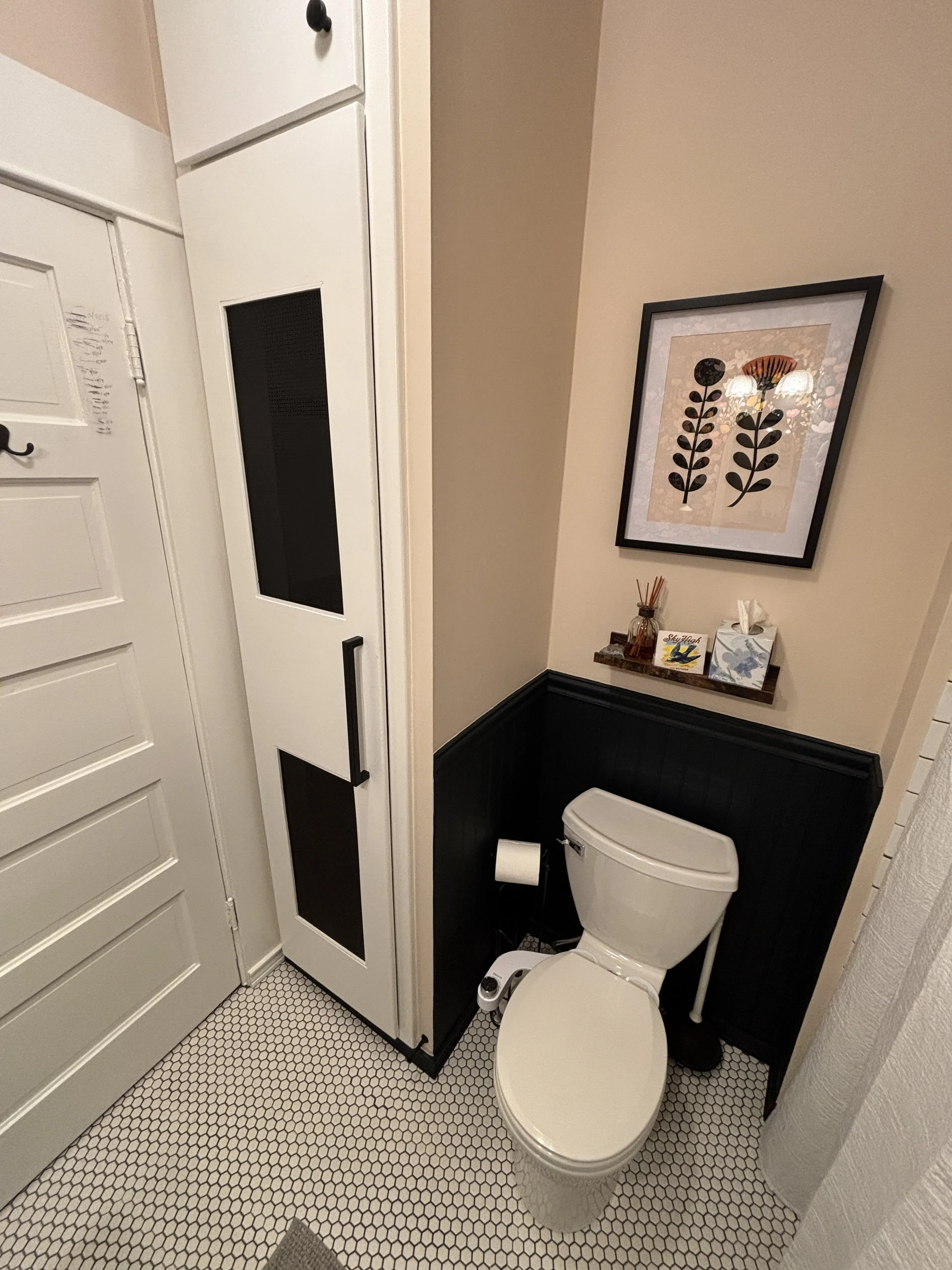 This was such a satisfying project! We were initially hired to redesign and give the bathroom a modern look. Yet during our walkthrough, we quickly noticed the need for their coat closet to be closer to the front door. Both spaces were definitely in need of a TODS overhaul.